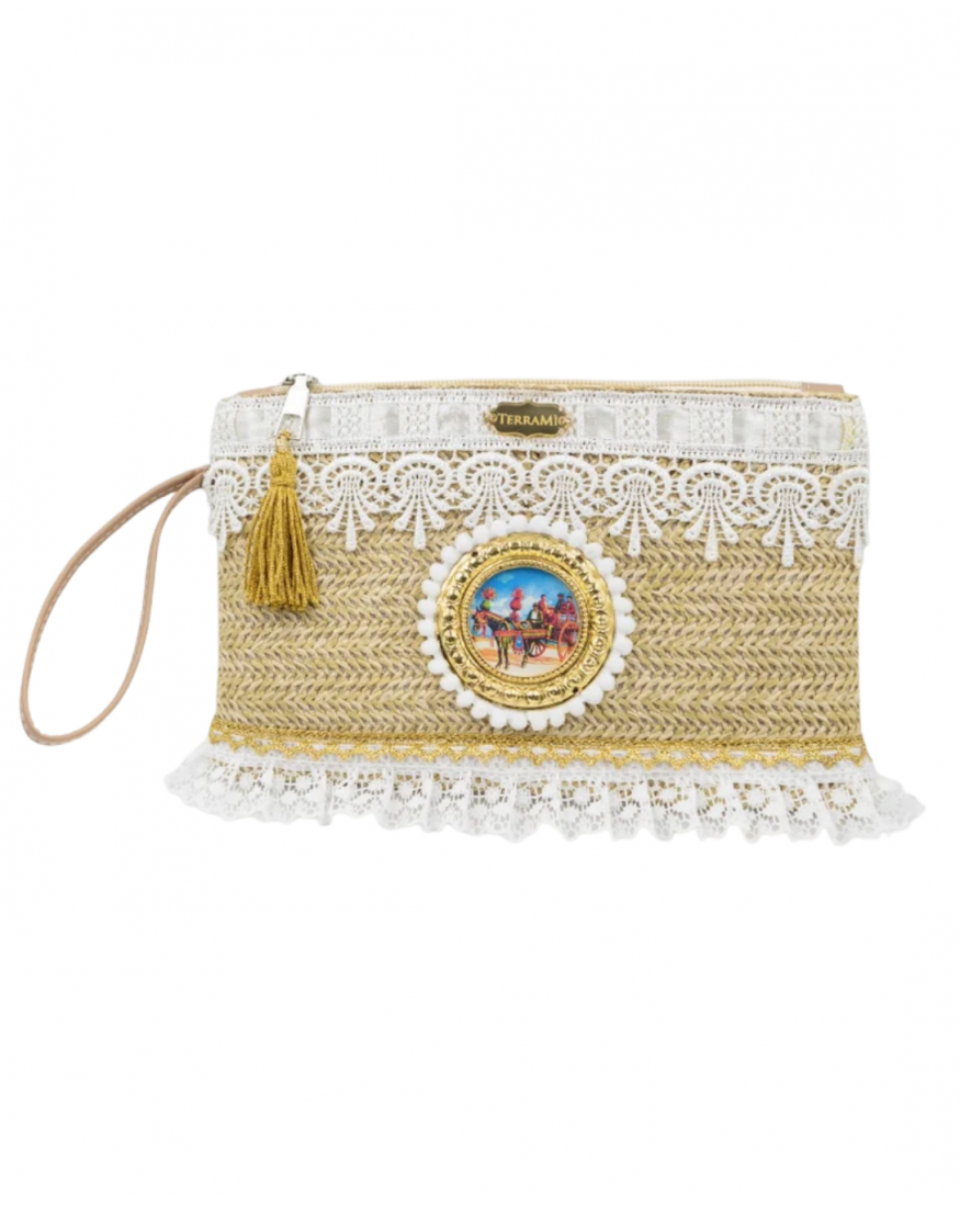 The Sicilian Clutch Bag is an artisanal product, handmade in the region of Sicily. This clutch bag is available in different colors, patterns, and typical textures, such as those inspired by Sicilian tradition and culture, such as geometric patterns, images of women, boats, flowers, and scenes of daily life. The shape and size are perfect for carrying by hand or over the shoulder, for any occasion, whether formal or informal. The Sicilian clutch bag is an excellent example of Sicilian craftsmanship and an excellent gift idea, being a unique and original product that represents the tradition and culture of the region. Its beauty and versatility makes it a perfect choice for the modern woman who wants to carry Sicilian art and culture with her.