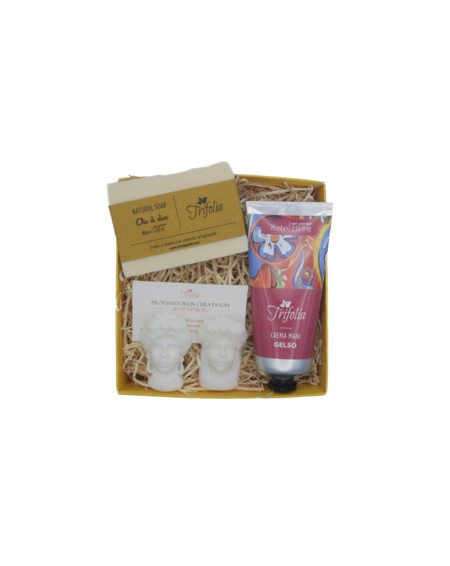 "OLIVE OIL" SOAP: handmade and all stages of production, based on Olive Oil, rich in antioxidants and natural emollients and soothing substances. natural emollients and soothing substances. The soap, with a fresh, citrus scent, is decorated with delicious slices of dried Sicilian oranges.