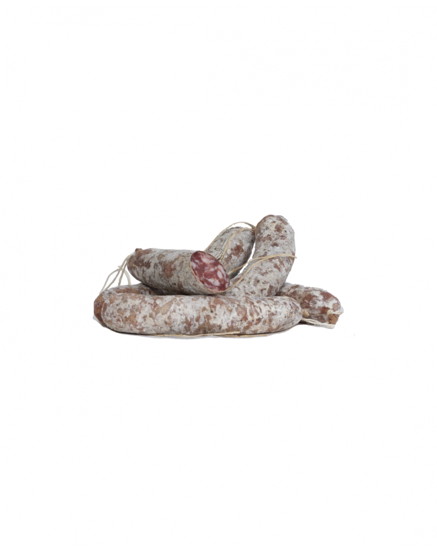 Farmer's salami is a typical Sicilian salami made with quality pork from animals raised sustainably and fed natural feed. Made in Sicily, this farmer's salami is made with high-quality ingredients and following traditional methods to ensure a unique and authentic flavor. The pork used for this salami is mixed with spices and flavors typical of Sicilian cuisine, such as garlic, pepper and chili, making it a particularly flavorful and tasty salami. Ideal as an appetizer or to accompany a good bottle of wine, this farmer's salami is a high-quality artisanal product, perfect for those who love strong, bold flavors.
