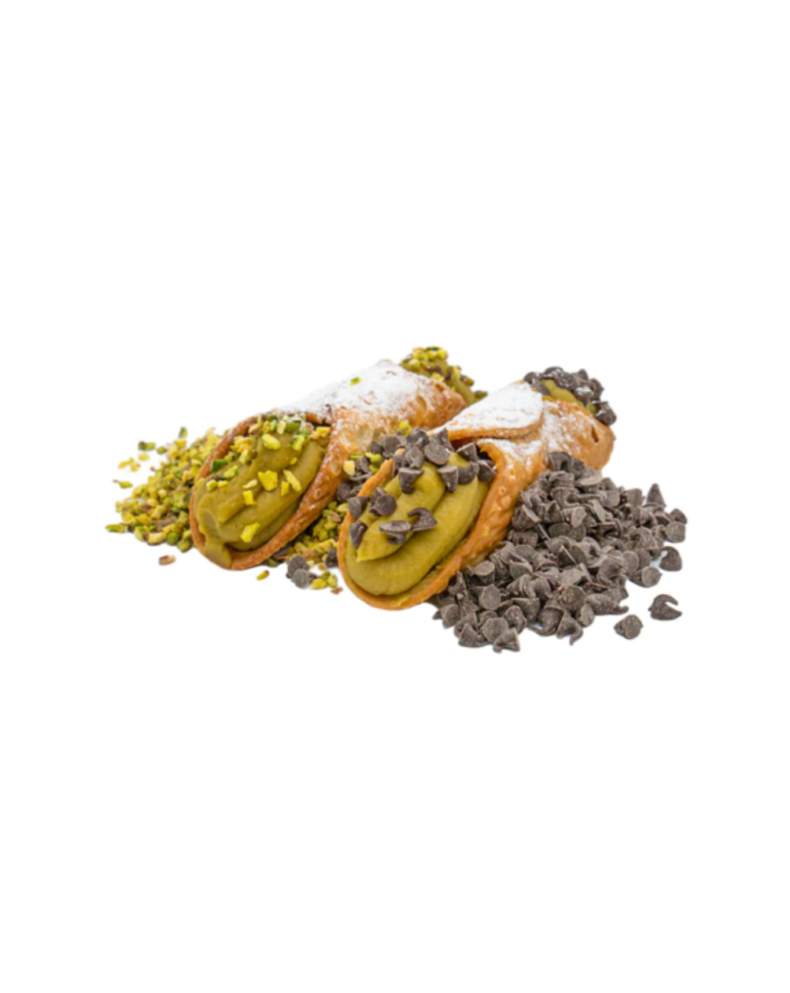 The kit for making Sicilian pistachio cannoli is the perfect gift for lovers of Sicilian pastry. Includes everything you need to prepare delicious pistachio cannoli at home: Catania cannoli peel, Sicilian pistachio cream, pistachio grains, chocolate chips, icing sugar and pistachio spread cream. All this is presented in an elegant decorative box themed sicily, perfect to make a gift or to store your delicious cannoli.