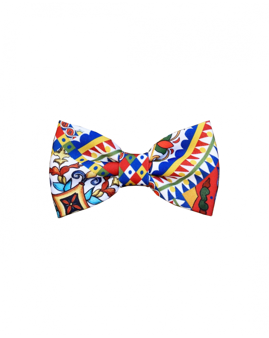The Sicilian Papillon is an elegant and refined accessory, perfect for completing your outfit and adding a touch of style and personality to your look. These bow ties are available in different patterns and colors, allowing you to choose the one that best suits your style and preferences. Available patterns can include floral, geometric or even stripes and polka dots. Available colors can range from classic shades such as black, blue or gray to brighter, more vibrant hues. These bow ties are made from quality fabrics and durable materials, ensuring an excellent fit and high durability. The Sicilian Papillon is an accessory that is a great choice for those who want to sport an original and sophisticated look!