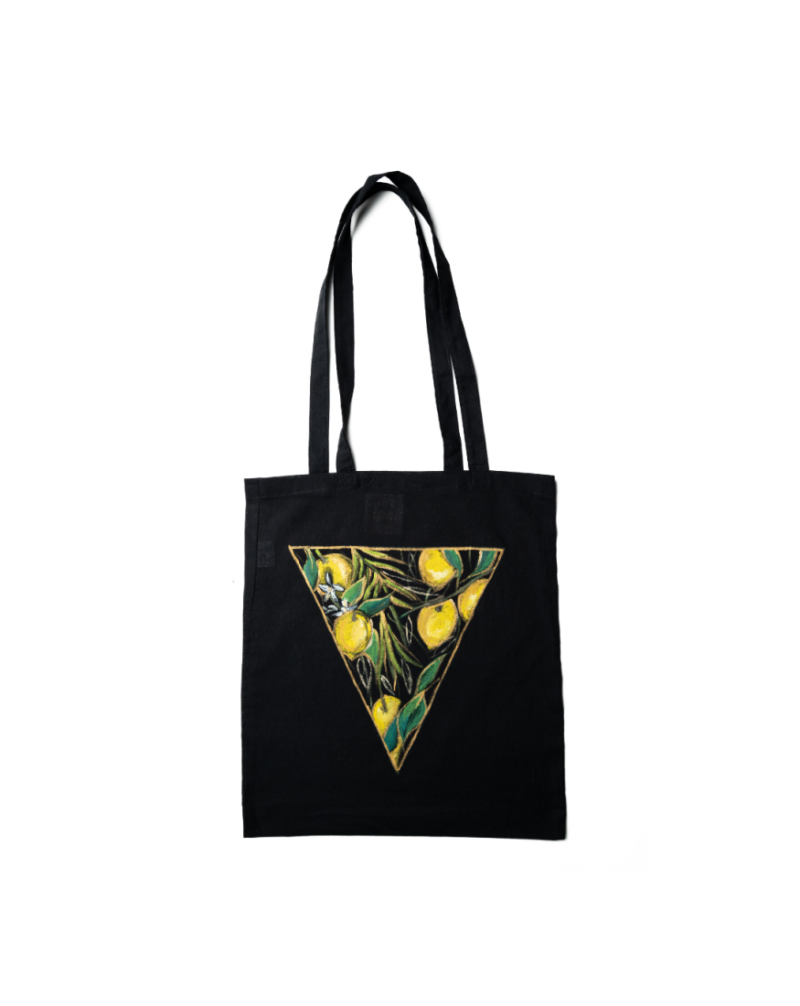 Borsa artigianale decorata a mano triangolo limoni