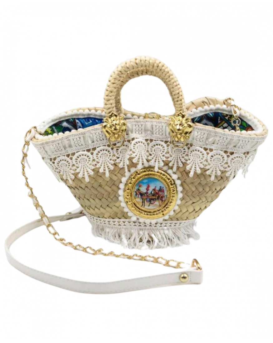 La "coffa siciliana" è una borsa artigianale realizzata a mano in Sicilia, utilizzando antiche tecniche. La borsa ha un design unico e originale, ispirato alla tradizionale coffa siciliana che veniva utilizzata principalmente per il trasporto di oggetti come frutta, verdura e altri prodotti alimentari. La borsa è perfetta per chi ama i prodotti artigianali e vuole portare con sé un pezzo unico e autentico della tradizione siciliana. La borsa è disponibile in diverse tonalità di colore ed è molto spaziosa, quindi è perfetta per trasportare tutto il necessario durante il giorno.