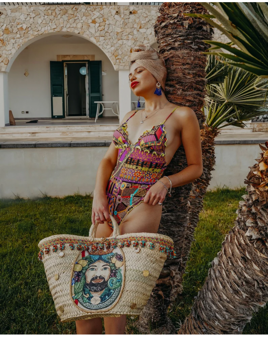 La "coffa siciliana" è una borsa artigianale realizzata a mano in Sicilia, utilizzando antiche tecniche. La borsa ha un design unico e originale, ispirato alla tradizionale coffa siciliana che veniva utilizzata principalmente per il trasporto di oggetti come frutta, verdura e altri prodotti alimentari. La borsa è perfetta per chi ama i prodotti artigianali e vuole portare con sé un pezzo unico e autentico della tradizione siciliana. La borsa è disponibile in diverse tonalità di colore ed è molto spaziosa, quindi è perfetta per trasportare tutto il necessario durante il giorno.