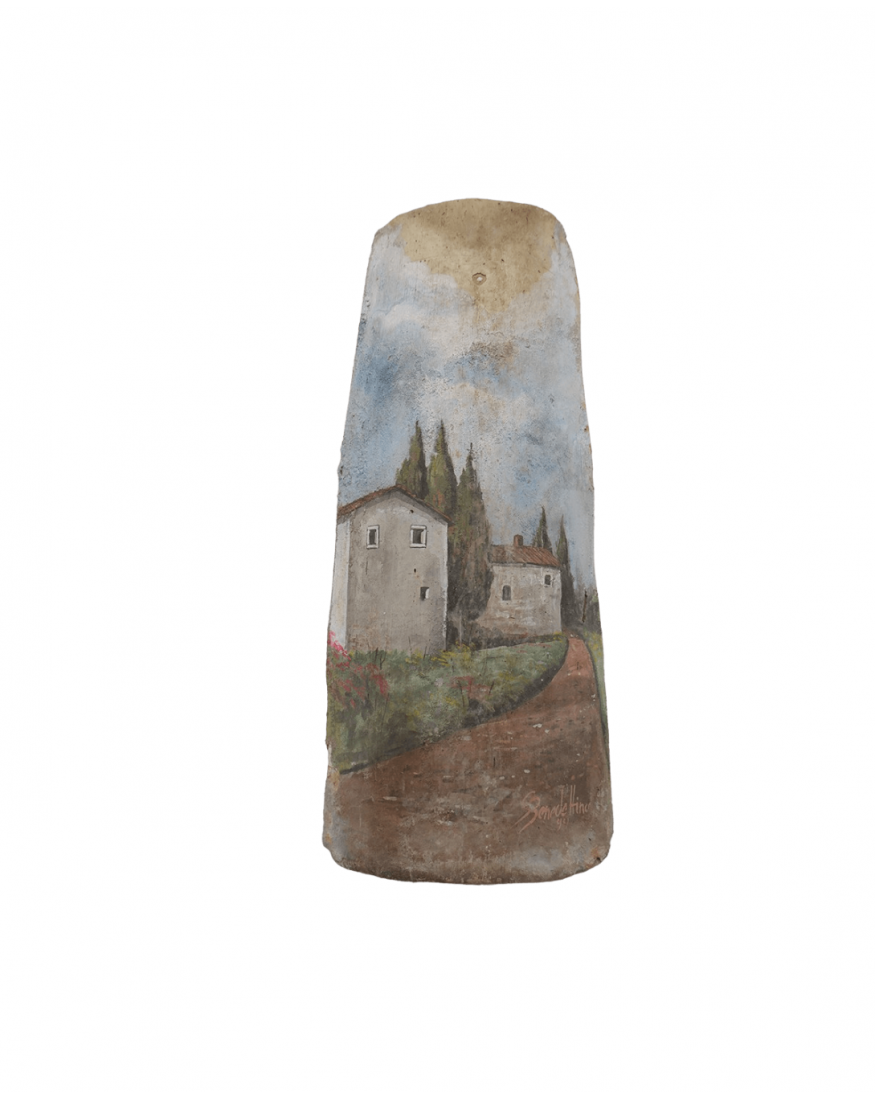 Tegola Realizzata e decorata interamente a mano, come da antica tradizione di Caltagirone, con materiali, smalti e colori atossici privi di piombo, rendono così unico il manufatto ispirato all’antico o al vissuto, con un effetto di crepature sulla superficie. Ogni articolo è unico, non vi è una copia, in quanto è stato creato artigianalmente! Ogni decorazione mediterranea narra della nostra Sicilia! Rappresentano infatti delle peculiarità uniche essendo di antichissime masserie e casali della prima metà del XX° sec. del territorio Siciliano. Dipinti a mano da artisti che mettono in luce angoli rari del territorio isolano.