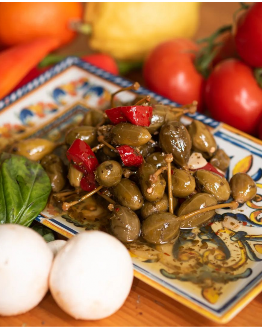 I capperi piccoli al sale sono un prodotto tipico della Sicilia. Sono i frutti del cappero raccolti in estate e conservati in sale marino per mantenere la loro croccantezza e il loro sapore caratteristico. Usati per condire pasta, insalate, pesce, carni e per la preparazione di sottaceti, conserva e marmellate. Sono una delle principali spezie utilizzate...