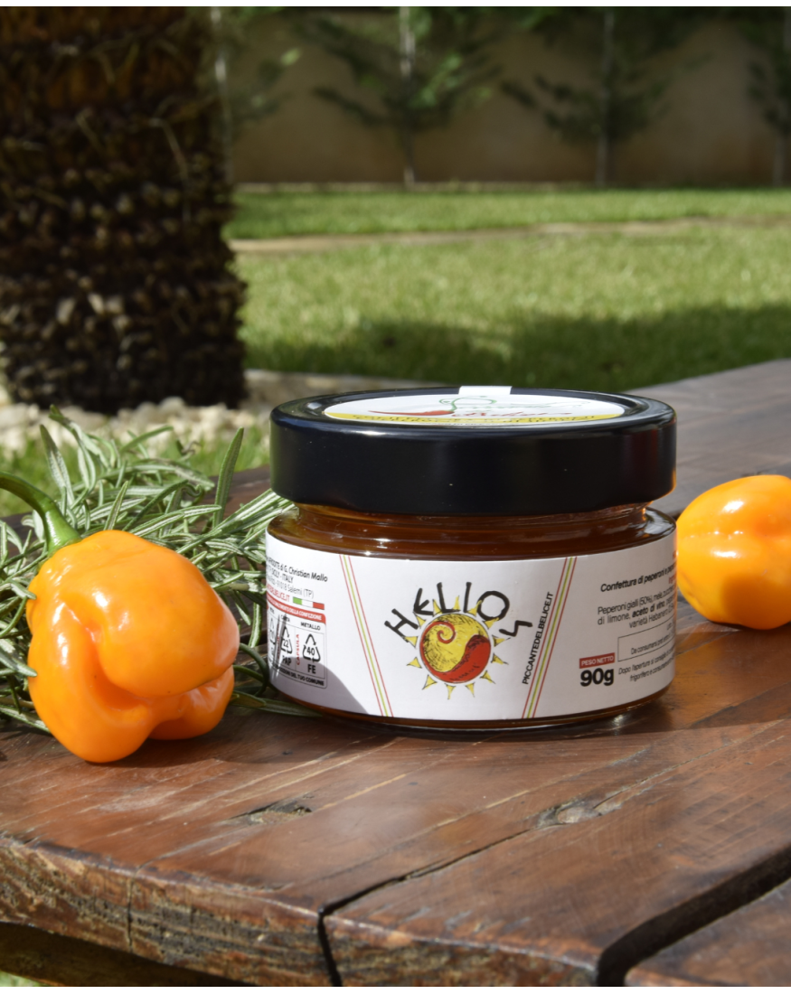 Sotto il sole siciliano nasce Helios il cui nome deriva, appunto, da colui che nella mitologia greca impersonava il sole. In questo vasetto il protagonista vero è l’Habanero arancione, varietà dalle note agrumate e un grado di piccantezza sulla scala di Scoville che rimane tra i più alti dopo il Naga Morich. Il grado di piccantezza di questo peperoncino unitamente agli altri ingredienti della ricetta artigianale, rendono questa confettura perfetta per tutti quei palati che amano sperimentare e farsi conquistare da un gusto deciso ma non troppo pungente.