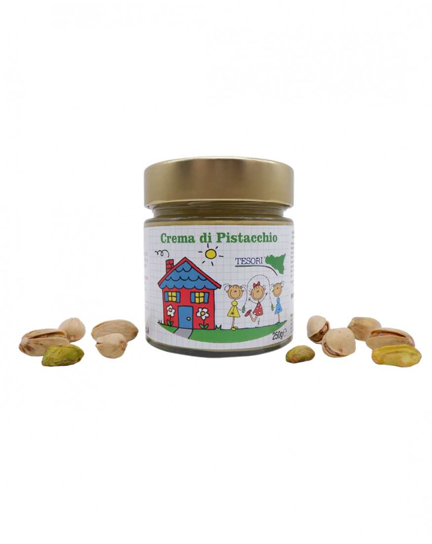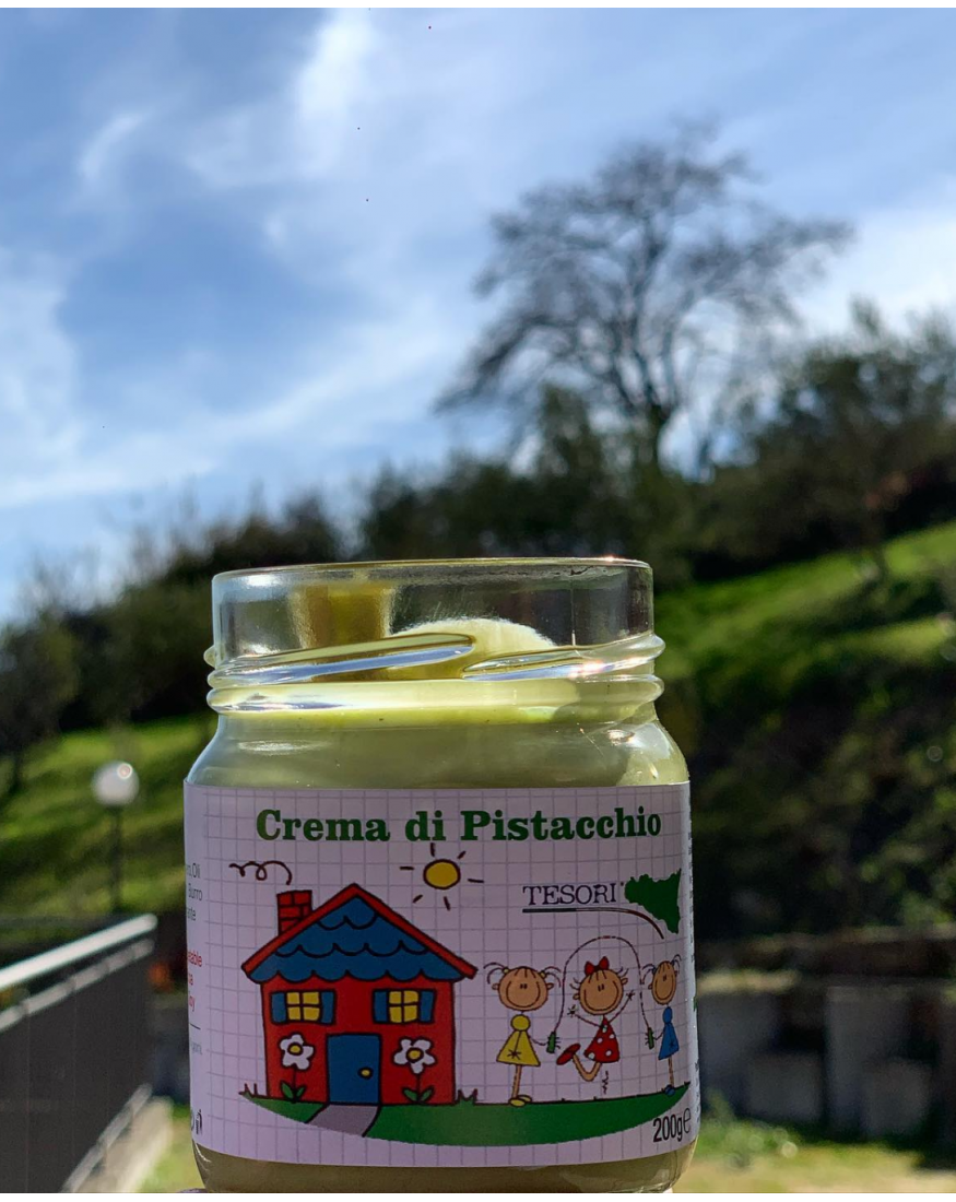 La nostra crema spalmabile di Pistacchio nasce da un’attenta lavorazione del pistacchio di Bronte; paese in cui il pistacchio diventa eccellenza gastronomica e protagonista della tradizione culinaria siciliana. Prodotto irrinunciabile per ogni amante del pistacchio: qualità artigianale, gusto unico e genuino. Un piccolo gioiello siciliano capace di impreziosire ogni spuntino o deliziare ogni fine pasto.