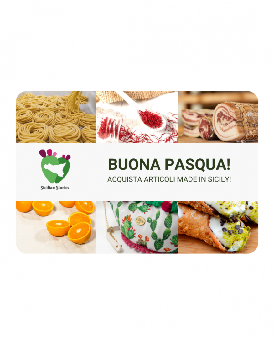 La nostra gift card ti permette di scoprire e gustare i prodotti più autentici e pregiati della Sicilia, direttamente dal marketplace di Sicilian Stories. Con la nostra gift card, regali un'esperienza indimenticabile ai tuoi amici e familiari, permettendo loro di esplorare il mondo meraviglioso della cultura siciliana attraverso i suoi prodotti di alta qualità. La carta regalo di Sicilian Stories è l'ideale per chiunque ami scoprire nuovi sapori e tesori nascosti della Sicilia, oppure per chi desidera fare un regalo speciale ad amici e parenti appassionati di cibo e cultura.