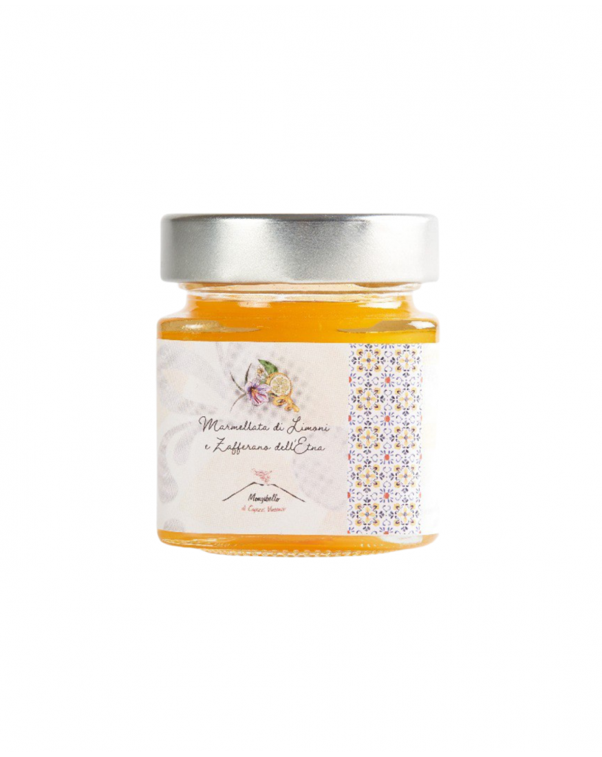 La marmellata di limone femminello e zafferano dell'Etna è una pregiata specialità della Sicilia, realizzata con limoni femminello siracusano IGP, zafferano dell'Etna e zucchero. La marmellata di limone femminello e zafferano dell'Etna ha una consistenza densa e vellutata, con un intenso aroma di limoni e un gusto dolce e delicato, arricchito dal sapore dello zafferano. È perfetta per la prima colazione, da spalmare su pane o fette biscottate, ma può essere anche utilizzata per preparare dolci o come condimento per carni e formaggi.