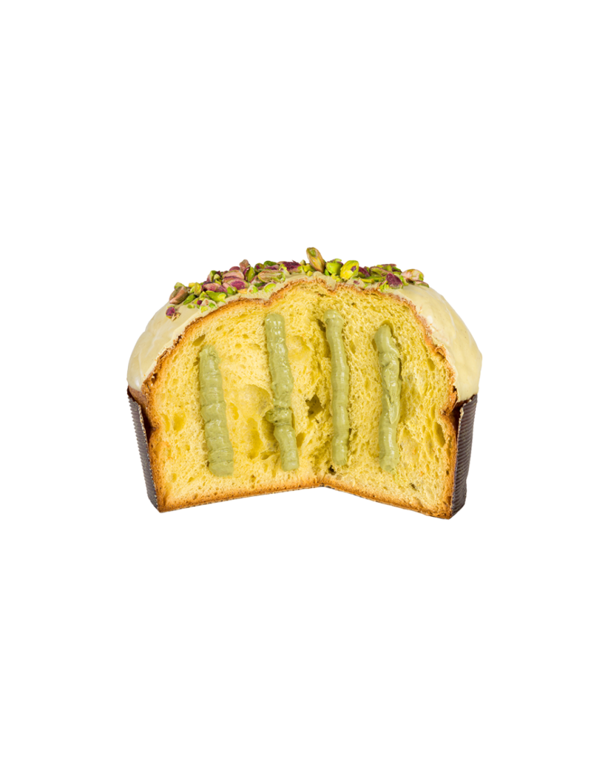 Copertura glassa di Pistacchio: zucchero, grassi vegetali (noce di cocco palmisti, palma, shea) olio di girasole, sale, latte scremato in polvere, latte intero in polvere, emulsionante: lecitina di soia, aroma naturale di vaniglia.