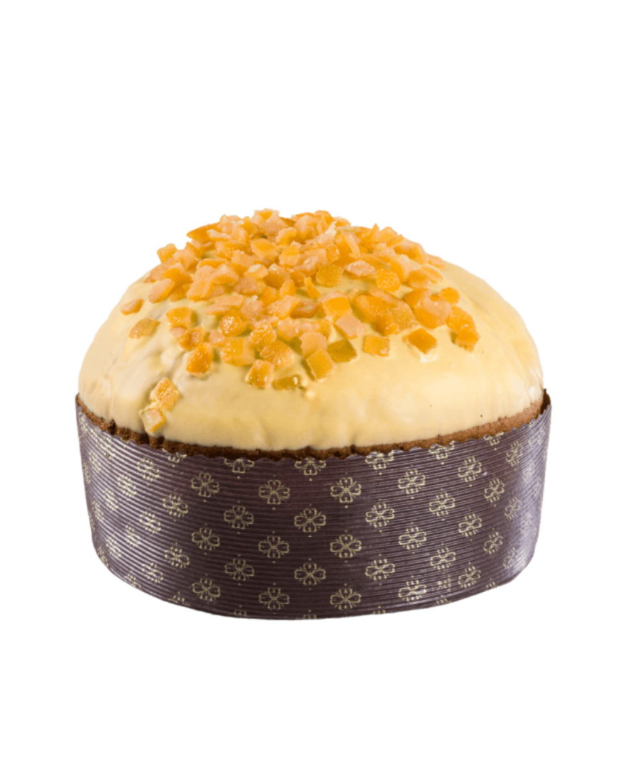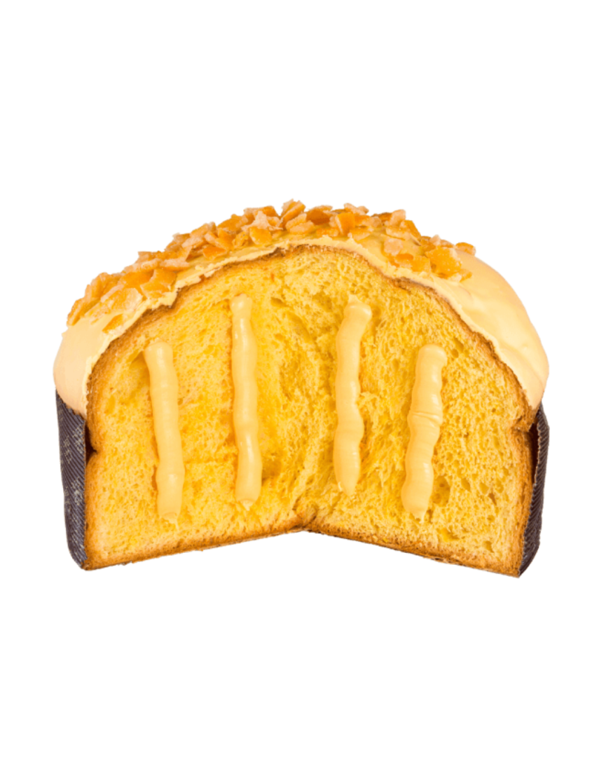 Ingredienti: Farina di GRANO (GLUTINE), BURRO (LATTE), zucchero, tuorlo d’UOVO, glassa [cioccolato bianco (zucchero, burro di cacao, LATTE intero in polvere, emulsionante: lecitina di SOIA), olio essenziale di mandarino 0.3%], LIEVITO naturale (FRUMENTO), emulsionante: mono- e di- gliceridi degli acidi grassi, miele, LATTE scremato in polvere, sale, aromii naturali, E160a: betacarotene (betacarotene, olio di girasole, vit. E), olio essenziale di mandarino 0.3%, scorze di mandarino candite (scorze di mandarino 50%, sciroppo di glucosio, zucchero).
